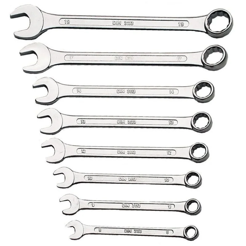 Set 8 Chei Combinate ( la un capat fixe si la celalalt inelare ), Chrom - Vanadium - MANNESMANN